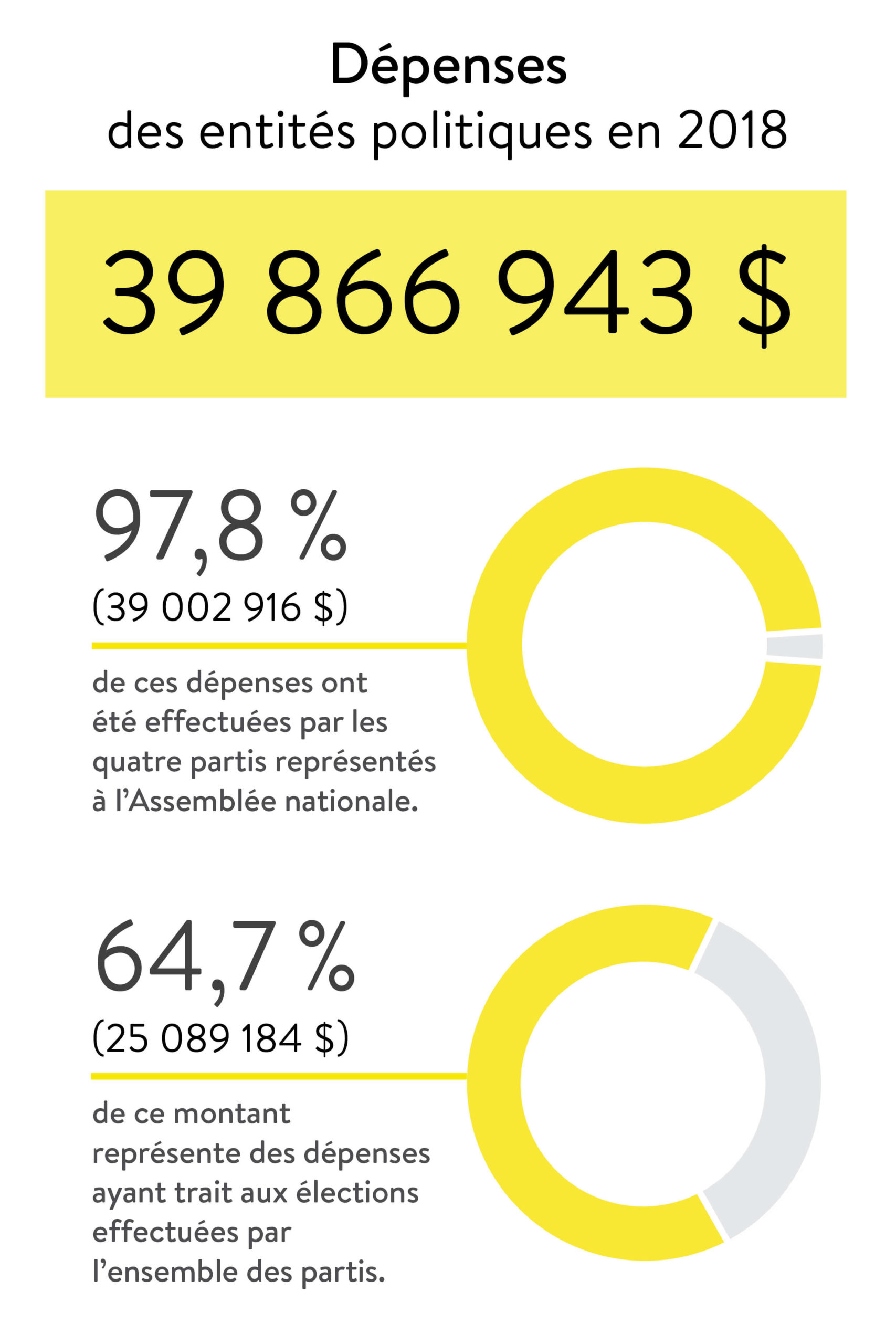 - Les entités politiques ont dépensé 39 866 943 $ en 2018.